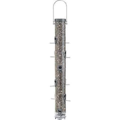 Stainless steel wire; uv stabilized polycarbonate tube; metal die castings; metal perches; seed baffle; threaded base 30. Use sunflower mix or a good blend. Pole mount is not recommended. Threaded base allows addition of tray or other accessories. Classic sunflower / mixed seed feeder. Holds 1 pound of seed offers...